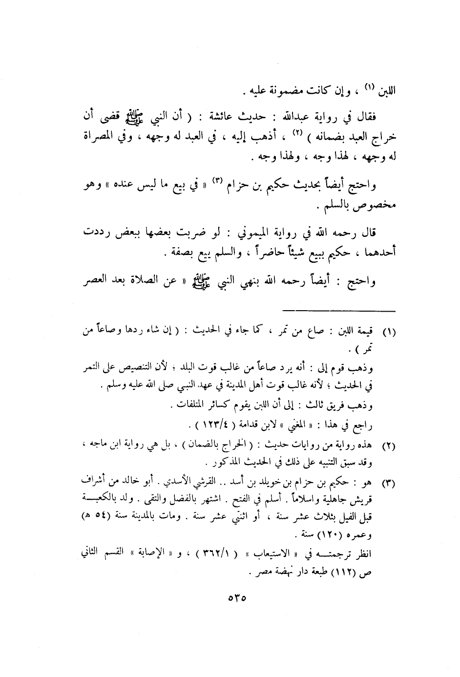 فقال في رواية عبد الله: حديث عائشة: "أن النبي صلى الله عليه وسلم قضى أن خراج العبد بضمانه"٢، أذهب إليه، في العبد له وجهه، وفي المصراة له وجهه، لهذا وجه، ولهذا وجه.