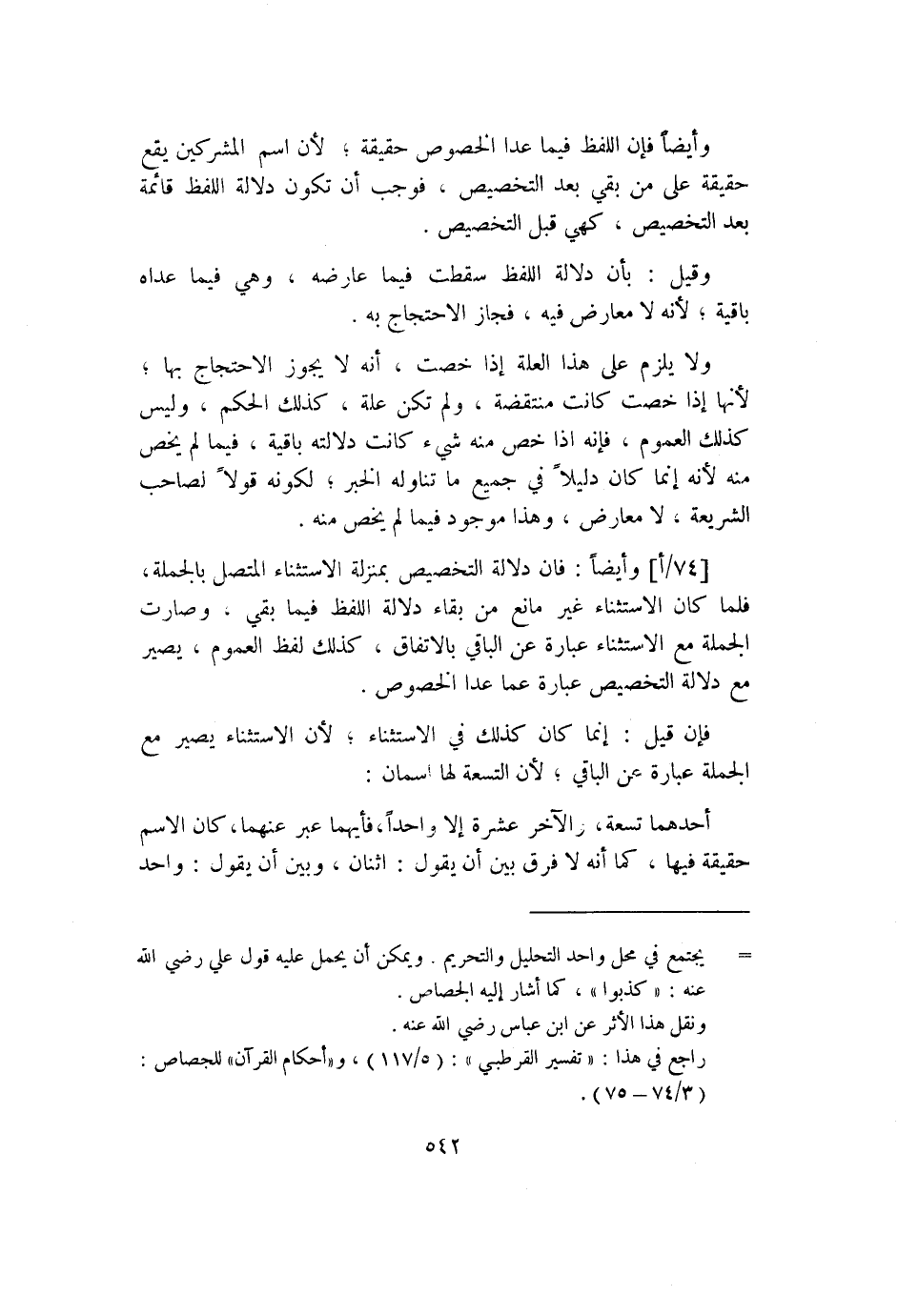 وأيضًا فإن اللفظ فيما عدا الخصوص حقيقة؛ لأن اسم المشركين يقع حقيقة على من بقي بعد التخصيص؛ فوجب أن تكون دلالة اللفظ قائمة بعد التخصيص، كهي قبل التخصيص.
