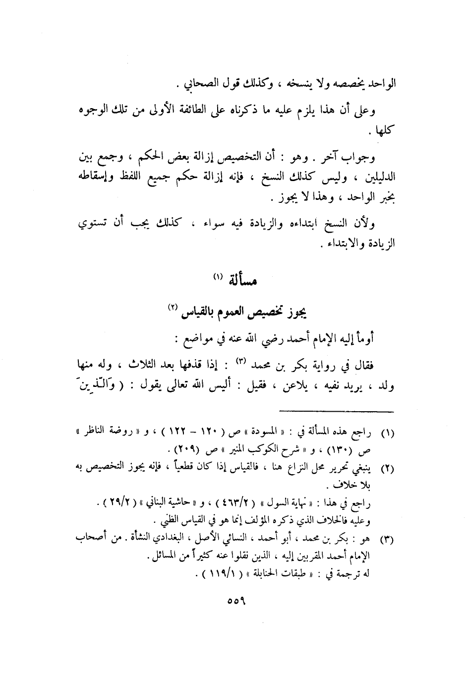 ١ راجع هذه المسألة في: "المسودة" ص"١٢٠-١٢٢"، و"روضة الناظر" ص"١٣٠"، و"شرح الكوكب المنير" ص"٢٠٩".