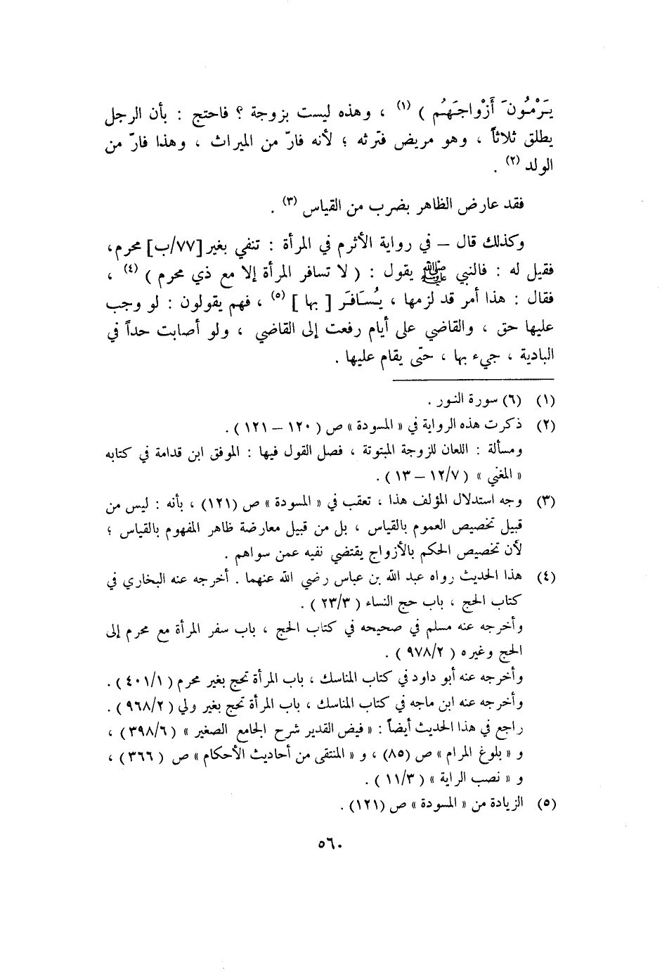 وكذلك قال -في رواية الأثرم في المرأة: تنفي بغير [٧٧/ب] محرم؛ فقيل له: فالنبي صلى الله عليه وسلم يقول: "لا تسافر المرأة إلا مع ذي محرم" ٤، فقال: هذا أمر قد لزمها، يسافر [بها] ٥، فهم يقولون: لو وجب عليها حق، والقاضي على أيام رفعت إلى القاضي، ولو أصابت حدًا في البادية؛ جيء بها، حتى يقام عليها.