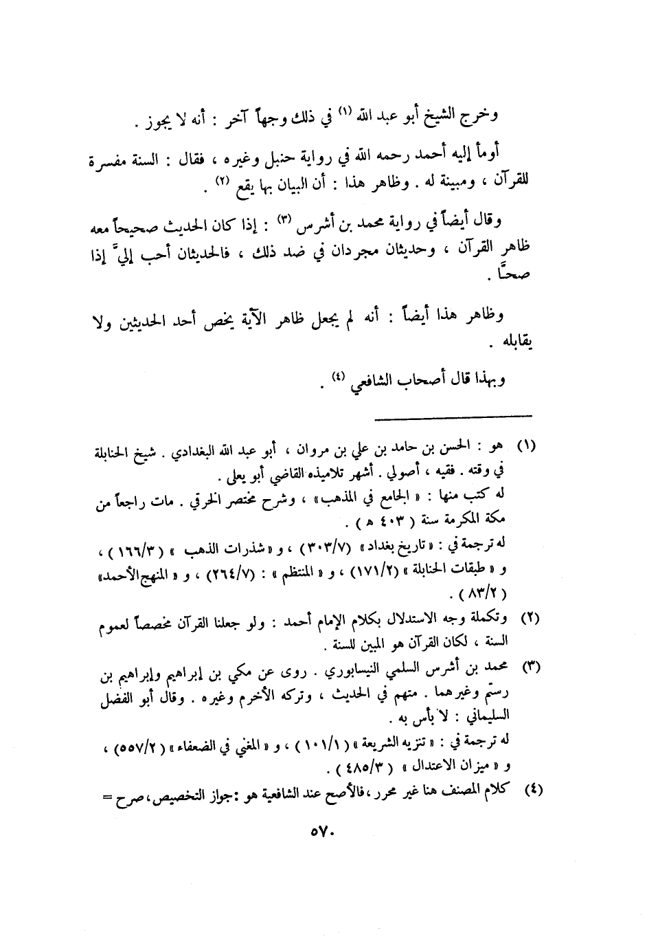 ١ هو: الحسن بن حامد بن علي بن مروان، أبو عبد الله البغدادي. شيخ الحنابلة في وقته، فقيه، أصولي. أشهر تلاميذه القاضي أبو يعلى.