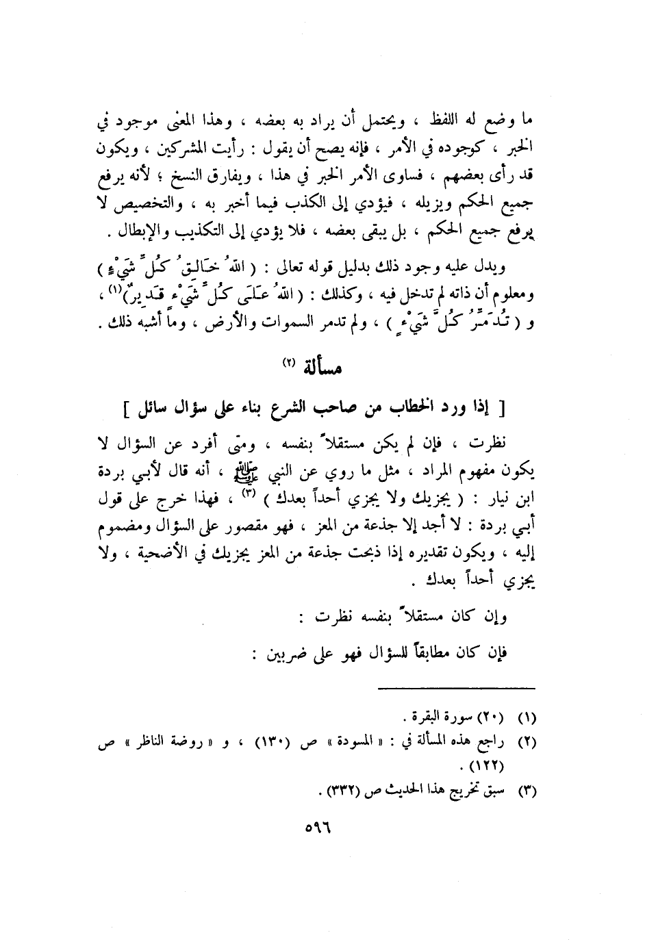 ١ راجع هذه المسألة في: "المسودة" ص"١٣٠"، و "روضة الناظر" ص"١٢٢".