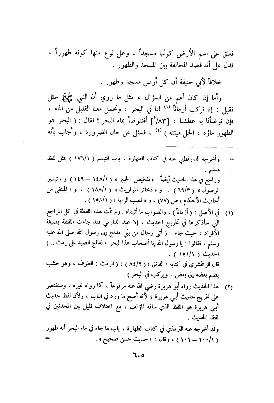 وقد أخرجه عنه الترمذي في كتاب الطهارة، باب ما جاء في ماء البحر أنه طهور "١/١٠٠-١٠١"، وقال: "حديث حسن صحيح".=