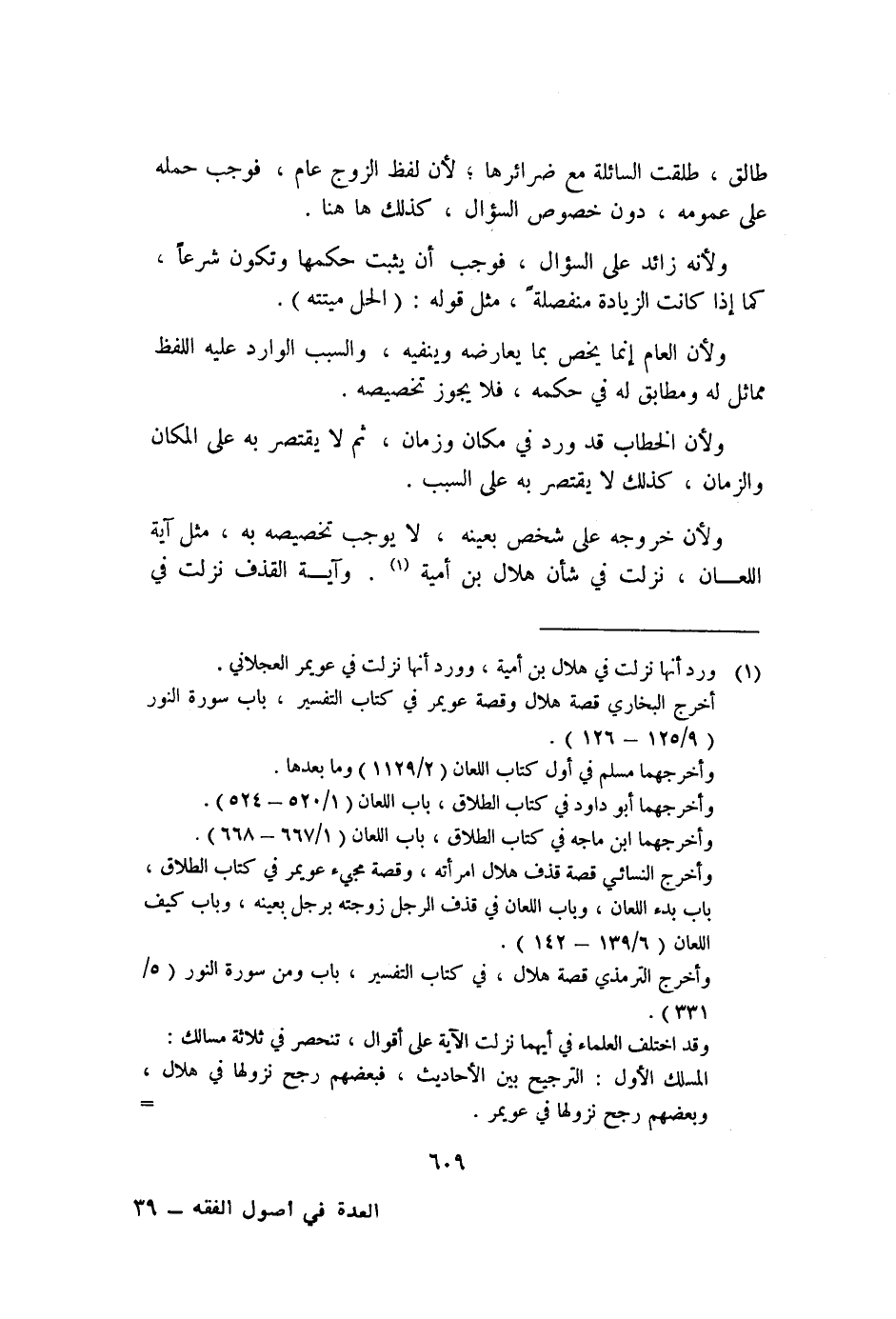 ولأن خروجه على شخص بعينه، لا يوجب تخصيصه به، مثل آية اللعان، نزلت في شأن هلال بن أمية١. وآية القذف نزلت في
