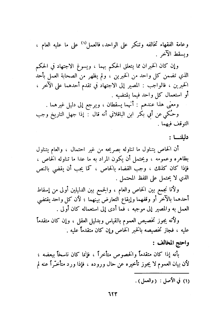 وعامة الفقهاء تخالفه وتنكر على الواحد؛ فالعمل١ على ما عليه العام، ويسقط الآخر.
