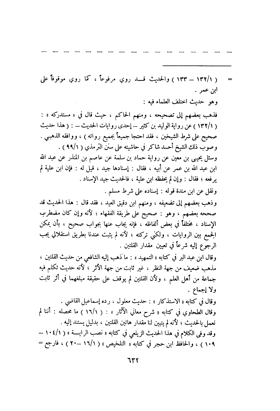 = ١/١٣٢-١٣٣ والحديث قد روي مرفوعًا، كما روي موقوفًا على ابن عمر.