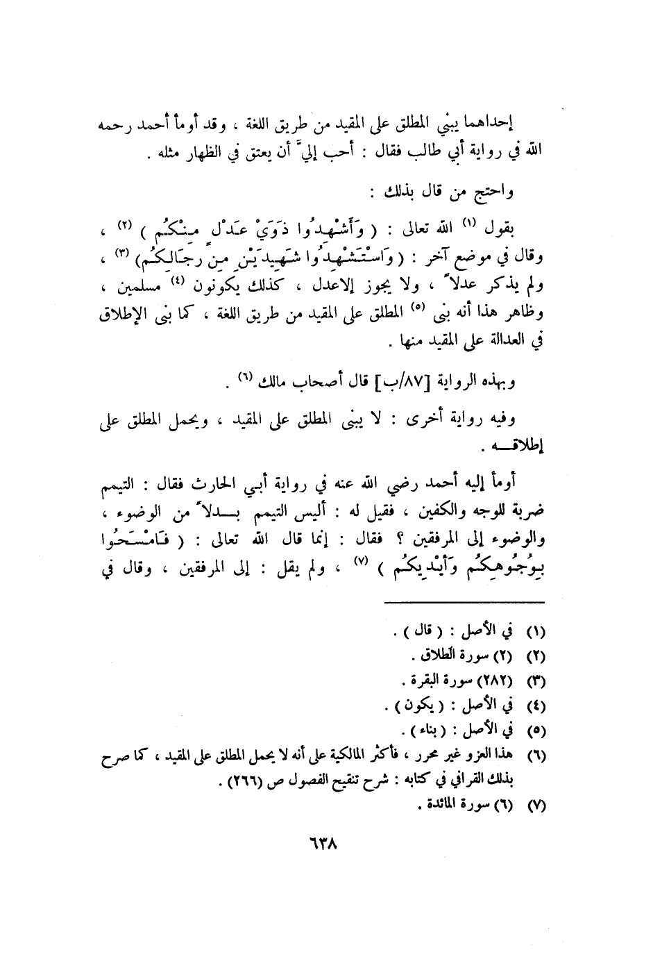 ٦ هذا العزو غير محرر، فأكثر المالكية على أنه لا يحمل المطلق على المقيد، كما صرح بذلك القرافي في كتابه: شرح تنقيح الفصول ص٢٦٦.