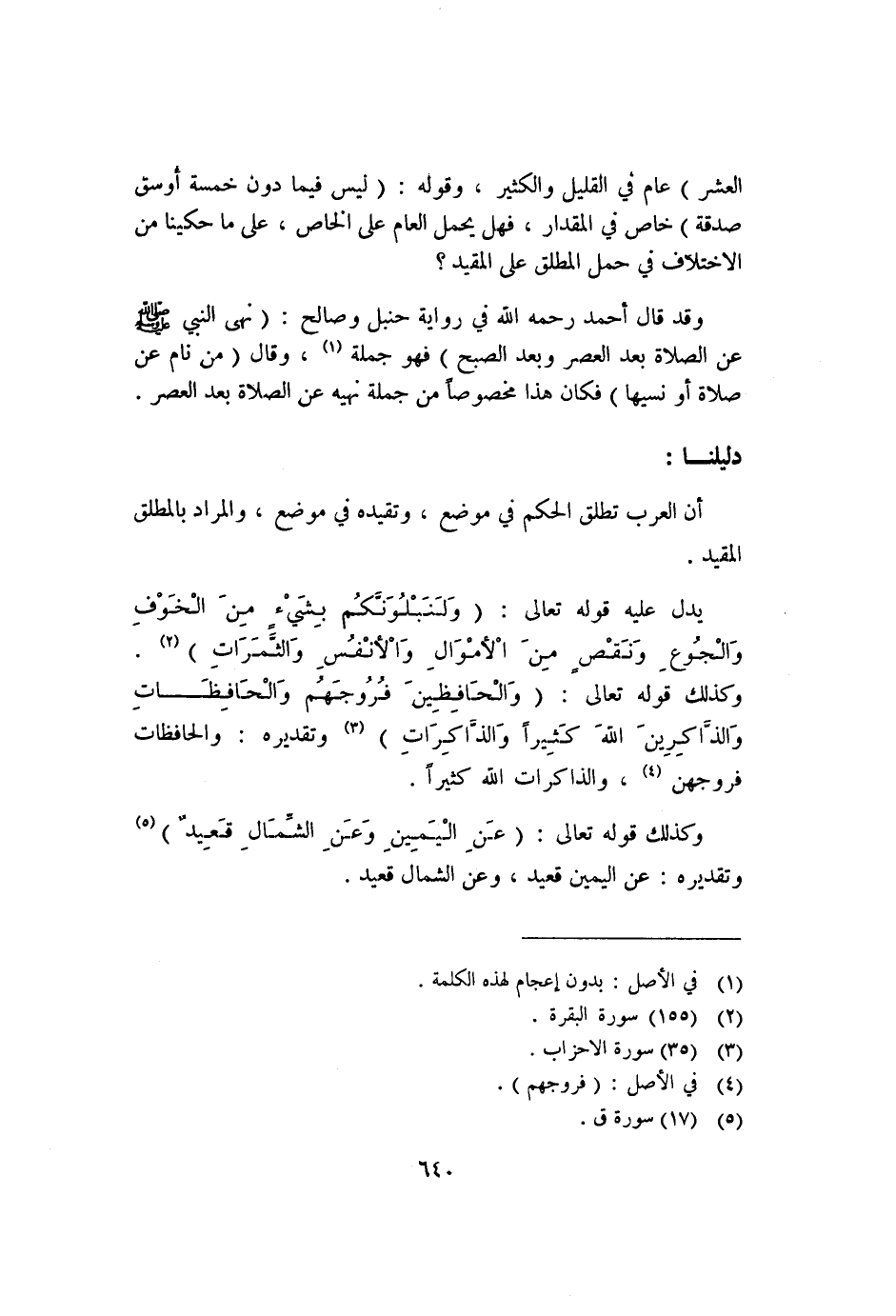 يدل عليه قوله تعالى: {وَلَنَبْلُوَنَّكُمْ بِشَيْءٍ مِنَ الْخَوْفِ وَالْجُوعِ وَنَقْصٍ مِنَ الأَمْوَالِ وَالأَنفُسِ وَالثَّمَرَاتِ} ١. وكذلك قوله تعالى: {وَالْحَافِظِينَ فُرُوجَهُمْ وَالْحَافِظَاتِ وَالذَّاكِرِينَ اللَّهَ كَثِيرًا وَالذَّاكِرَاتِ} ٢ وتقديره: والحافظات فروجهن٣، والذاكرات الله كثيرًا.
