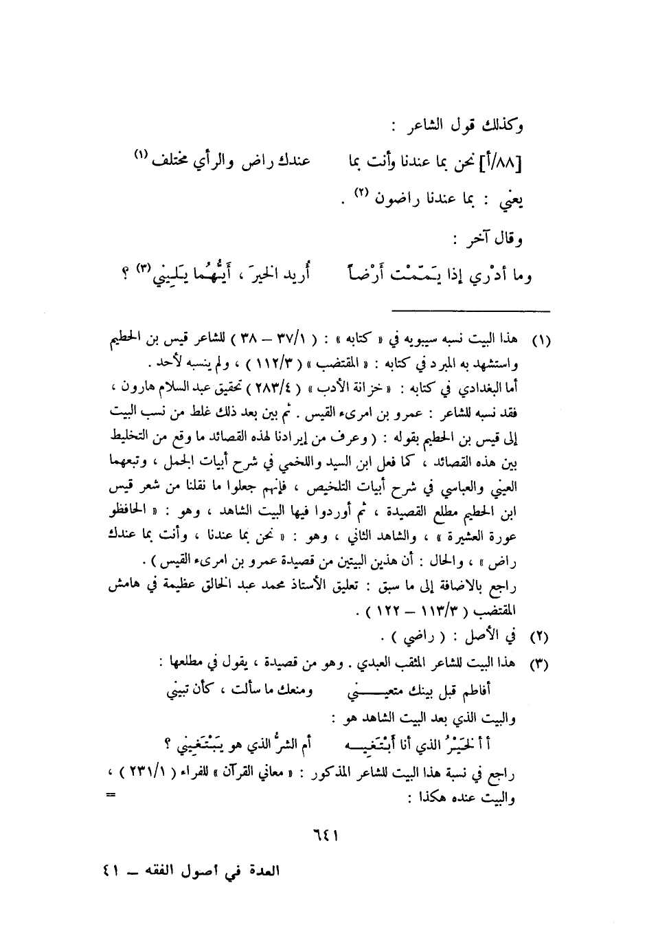 ١ هذا البيت نسبه سيبويه في "كتابه": "١/٣٧-٣٨" للشاعر قيس بن الخطيم واستشهد به المبرد في كتابه: "المقتضب": "٣/١١٢"، ولم ينسبه لأحد.