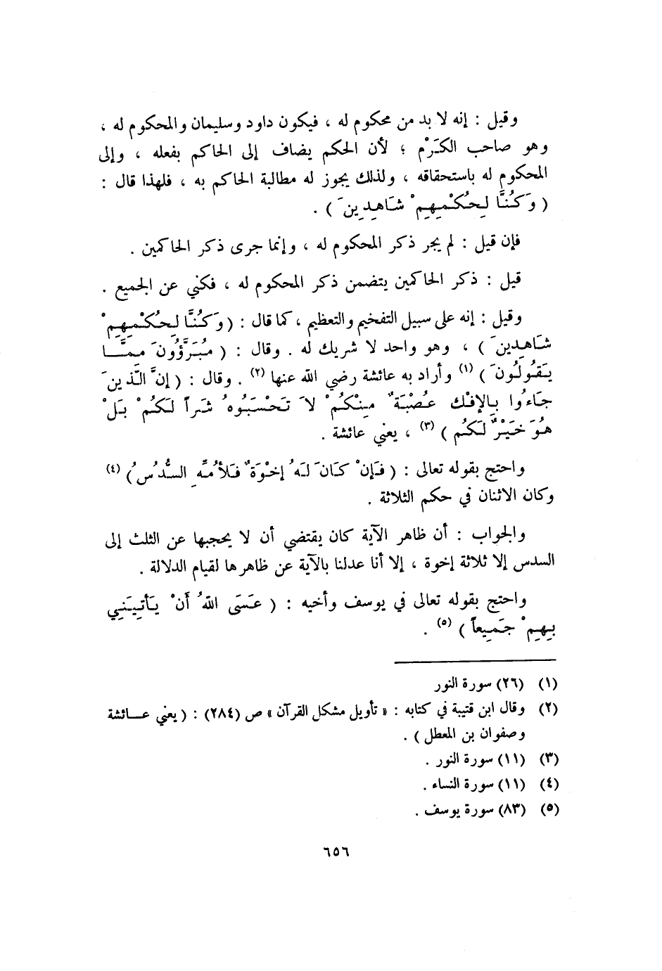 وقيل: إنه على سبيل التفخيم والتعظيم، كما قال: {وَكُنَّا لِحُكْمِهِمْ شَاهِدِينَ} ، وهو واحد لا شريك له، وقال: {مُبَرَّءُونَ مِمَّا يَقُولُونََ} ١ وأراد به عائشة رضي الله عنها٢. وقال: {إِنَّ الَّذِينَ جَاءُوا بِالإِفْكِ عُصْبَةٌ مِنْكُمْ لا تَحْسَبُوهُ شَرّاً لَكُمْ بَلْ هُوَ خَيْرٌ لَكُمْ} ٣، يعني عائشة.