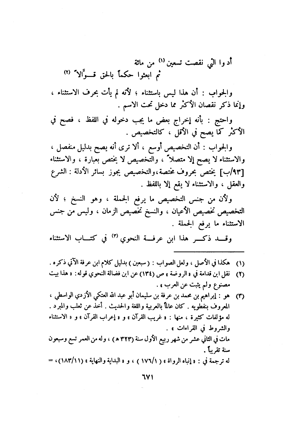 وقد ذكر هذا ابن عرفة النحوي٣ في كتاب الاستثناء