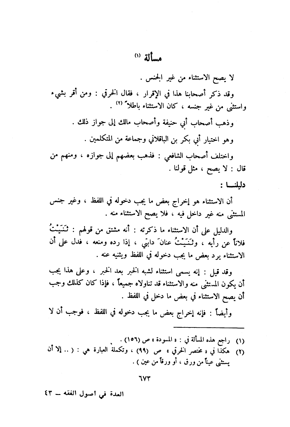 ١ راجع هذه المسألة في: "المسودة" ص"١٥٦".