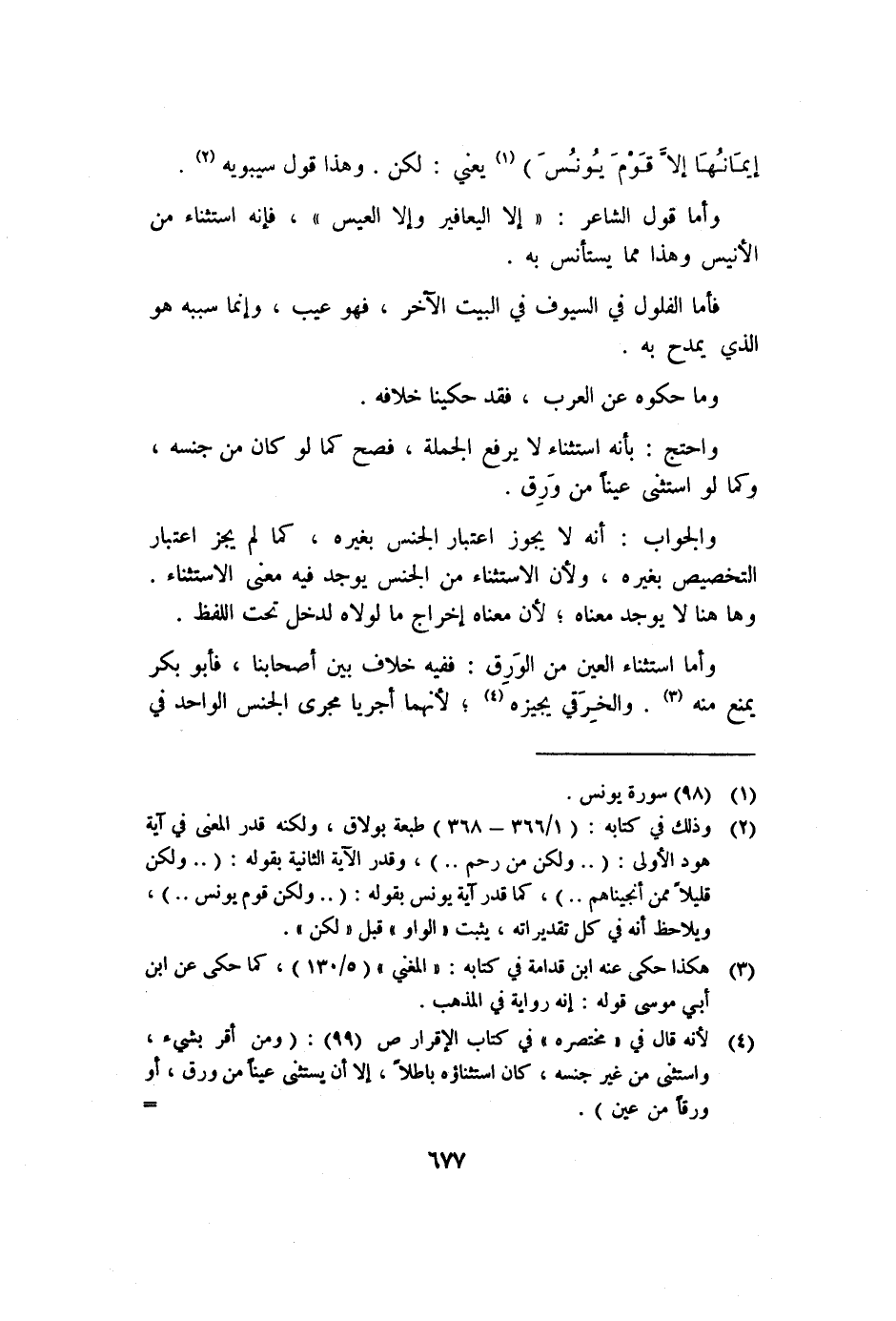 ٢ وذلك في كتابه: "١/٣٦٦-٣٦٨" طبعة بولاق، ولكنه قدر المعنى في آية هود الأولى: ".. ولكن من رحم.."، وقدر الآية الثانية بقوله: ".. ولكن قليلا ممن أنجيناهم"، كما قدر آية يونس بقوله: ".. ولكن قوم يونس.."، ويلاحظ أنه في كل تقديراته، يثبت "الواو" قبل "لكن".