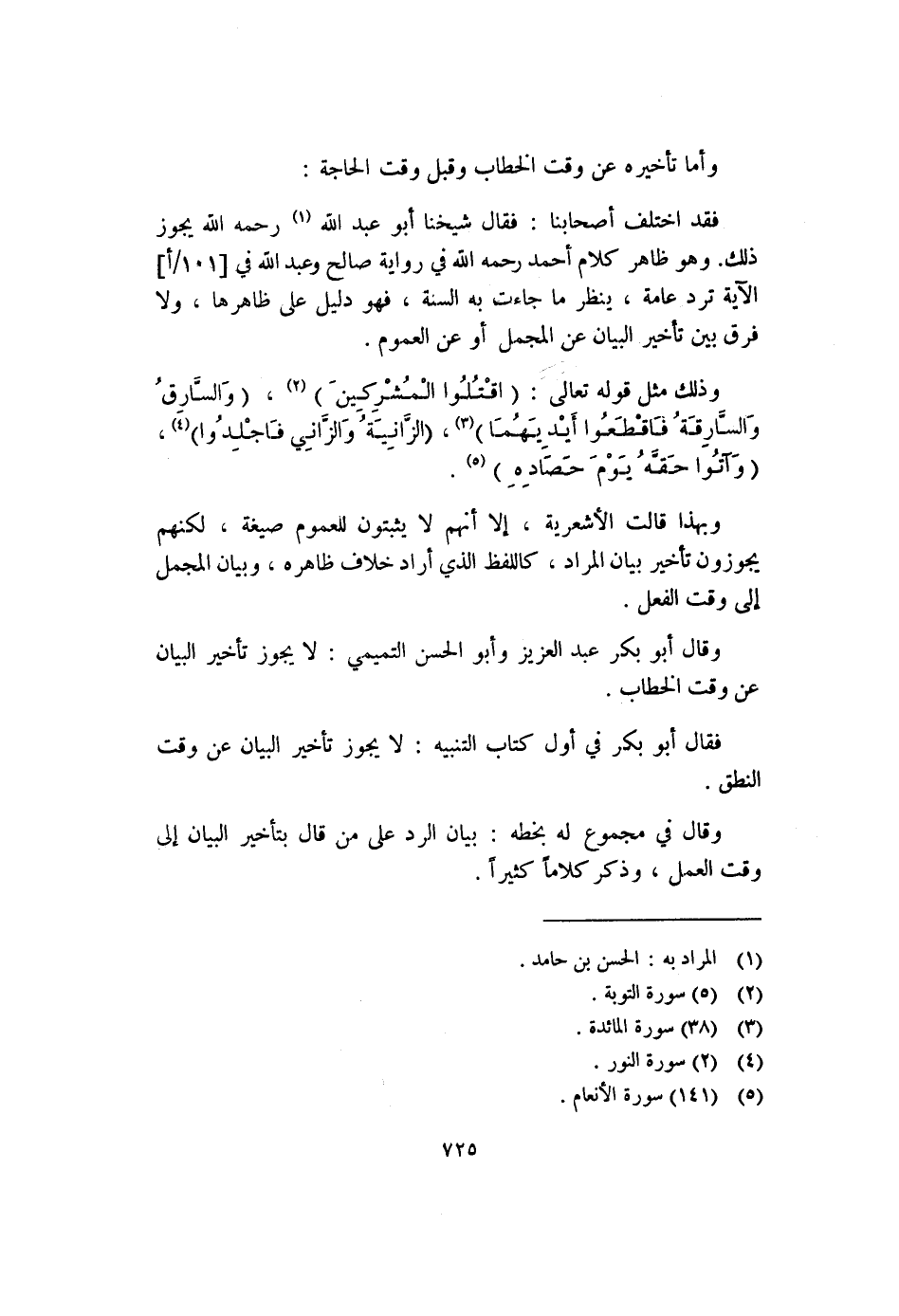 وقال في مجموع له بخطه: بيان الرد على من قال بتأخير البيان إلى وقت العمل، وذكر كلاماً كثيراً.