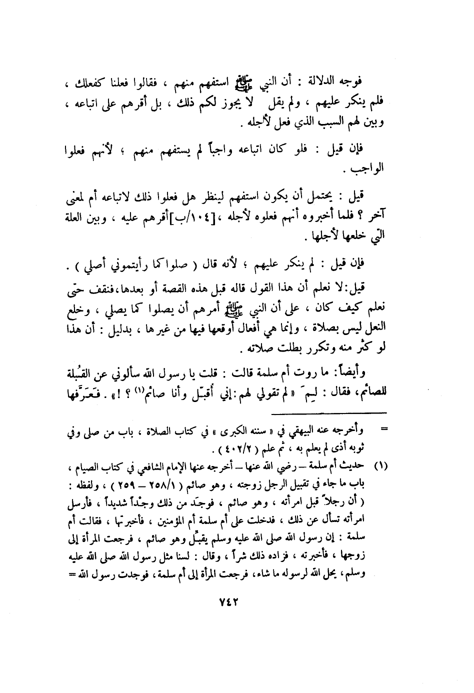 فوجه الدلالة: أن النبي - صلى الله عليه وسلم - استفهم منهم، فقالوا فعلنا كفعلك، فلم ينكر عليهم، ولم يقل لا يجوز لكم ذلك، بل أقرهم على اتباعه، وبين لهم السبب الذي فعل لأجله.