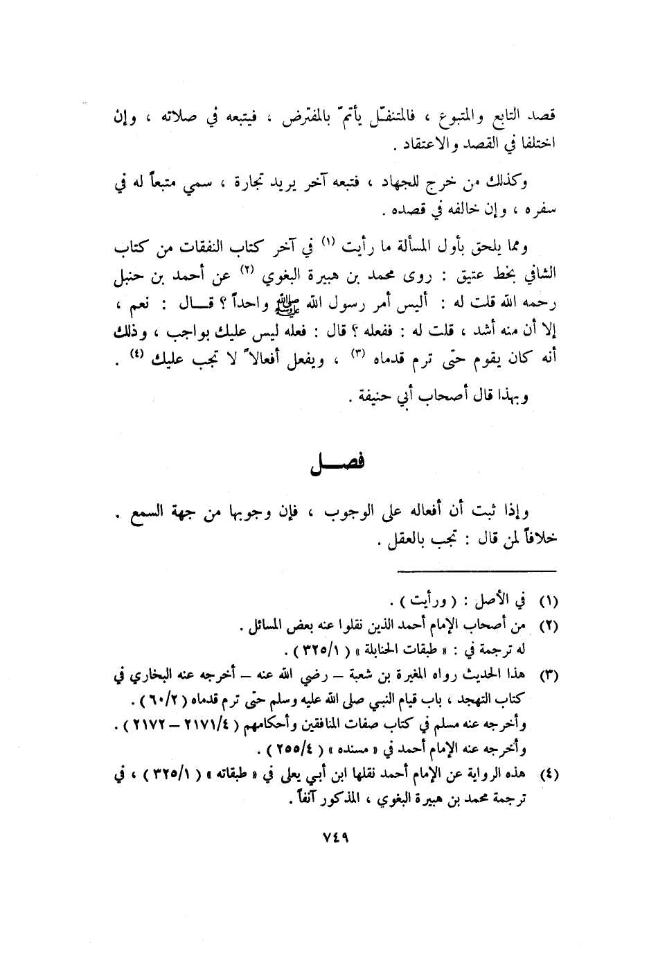 ومما يلحق بأول المسألة ما رأيت (١) في آخر كتاب النفقات من كتاب الشافي بخط عتيق: روى محمد بن هبيرة البغوي (٢) عن أحمد بن حنبل رحمه الله قلت له: أليس أمر رسول الله - صلى الله عليه وسلم - واحداً؟ قال: نعم، إلا أن منه أشد، قلت له: ففعله؟ قال: فعله ليس عليك بواجب، وذلك أنه كان يقوم حتى ترم قدماه (٣) ، ويفعل أفعالا لا تجب عليك (٤) .