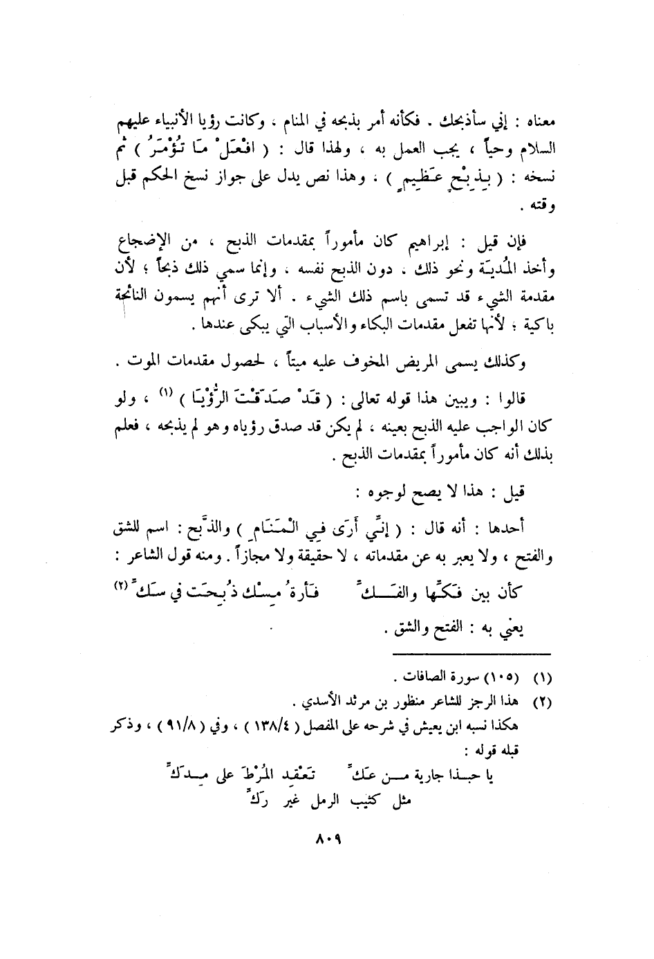 قالوا: ويبين هذا قوله تعالى: (قَدْ صَدّقْتَ الرؤيَا) (١) ، ولو كان الواجب عليه الذبح بعينه، لم يكن قد صدق رؤياه وهو لم يذبحه، فعلم بذلك أنه كان مأموراً بمقدمات الذبح.
