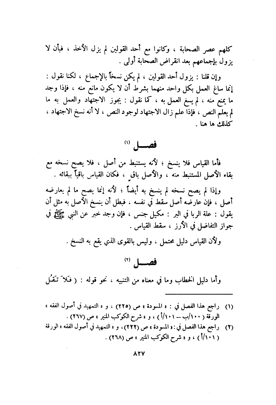 (٢) راجع هذا الفصل في: "المسودة" ص (٢٢٢) ، و"التمهيد في أصول الفقه" الورقة (١٠١/أ) ، و"شرح الكوكب المنير" ص (٢٦٨) .