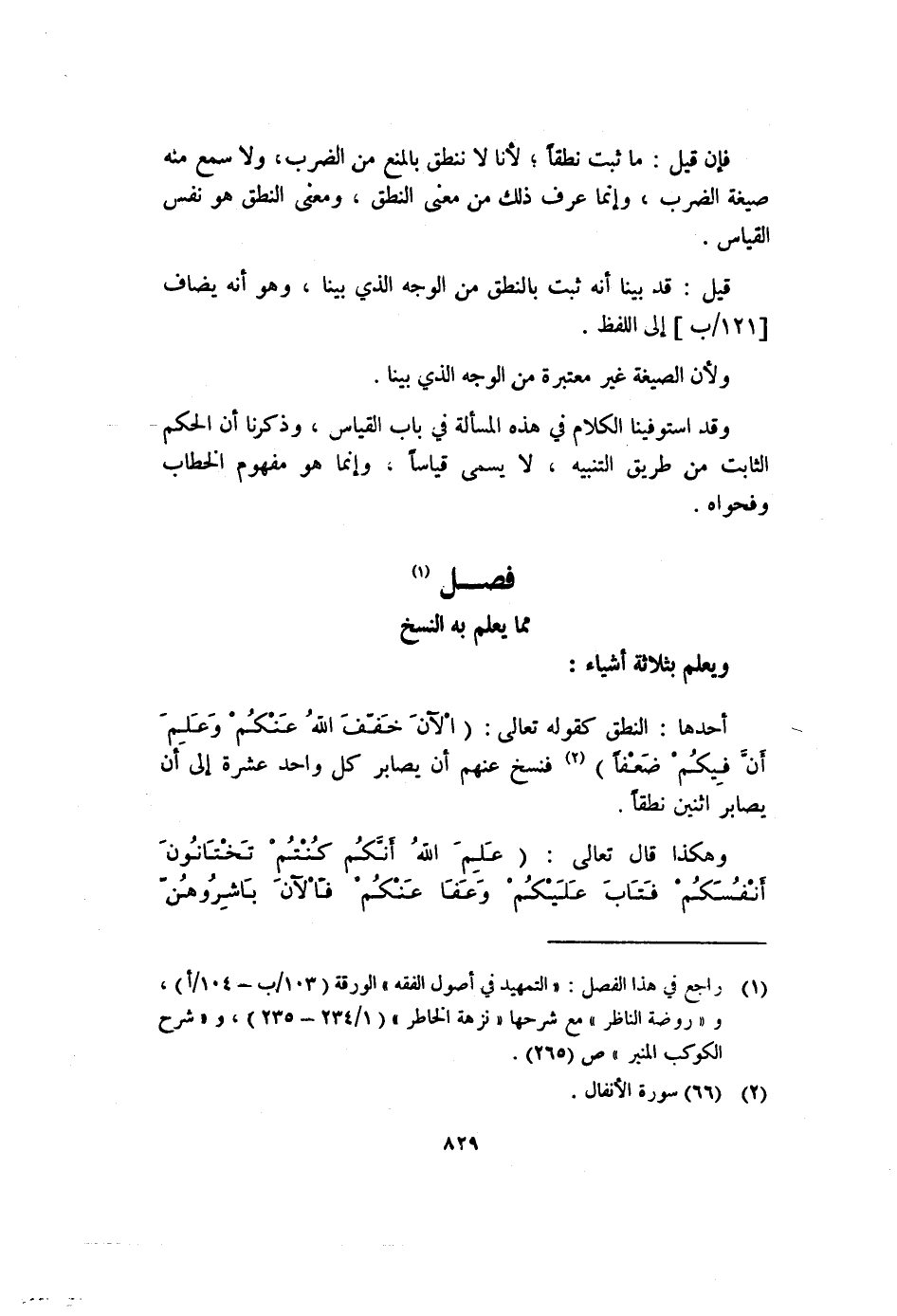 (١) رجع في هذا الفصل: "التمهيد في أصول الفقه" الورقة (١٠٣/ب-١٠٤/أ) ، و"روضة الناظر" مع شرحها "نزهة الخاطر" (١/٢٣٤-٢٣٥) ، و"شرح الكوكب المنير" ص (٢٦٥) .