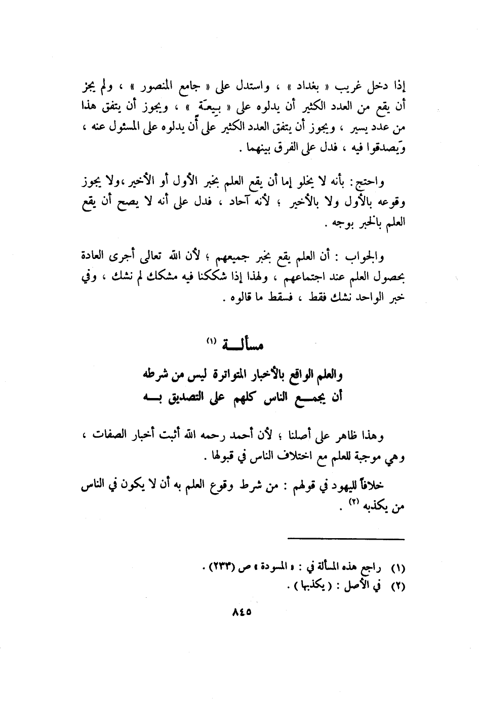 (١) راجع هذه المسألة في: "المسودة" ص (٢٣٣) .