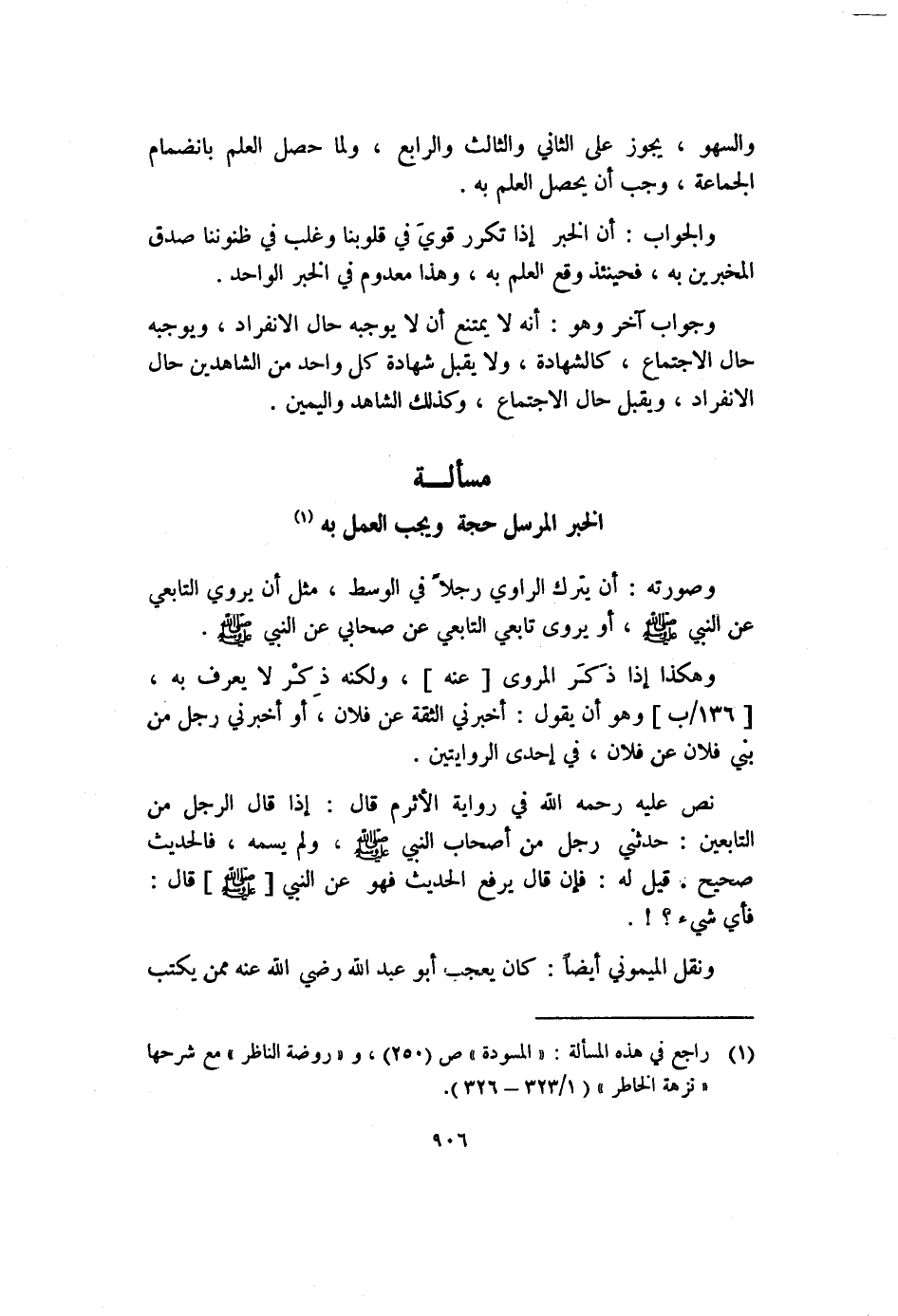 (١) راجع في هذه المسألة: "المسودة" ص (٢٥٠) ، و"روضة الناظر" مع شرحها "نزهة الخاطر" (١/٣٢٣-٣٢٦) .