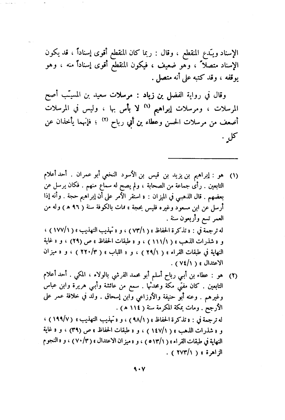 (١) هو: إبراهيم بن يزيد بن قيس بن الأسود النخعي أبو عمران. أحد أعلام التابعين. رأى جماعة من الصحابة، ولم يصح له سماع منهم. فكان يرسل عن بعضهم. قال الذهبي في الميزان: "استقر الأمر على أن إبراهيم حجة. وأنه إذا أرسل عن ابن مسعود وغيره فليس بحجة" مات بالكوفة سنة (٩٦هـ) وله من العمر تسع وأربعون سنة.
