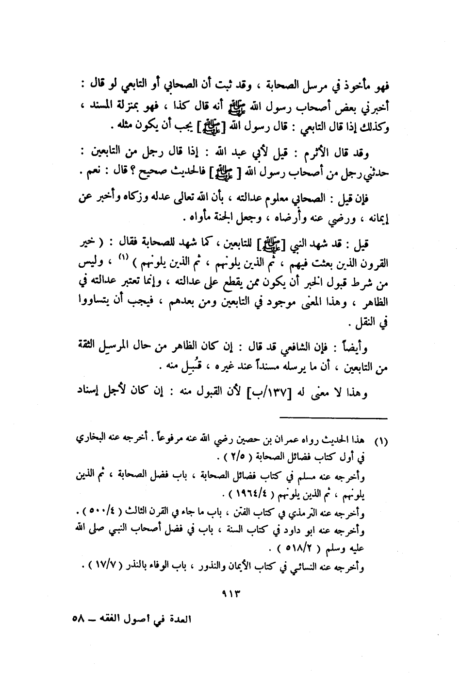 (١) هذا الحديث رواه عمران بن حصين رضى الله عنه مرفوعاً. أخرجه عنه البخاري في أول كتاب فضائل الصحابة (٥/٢) .