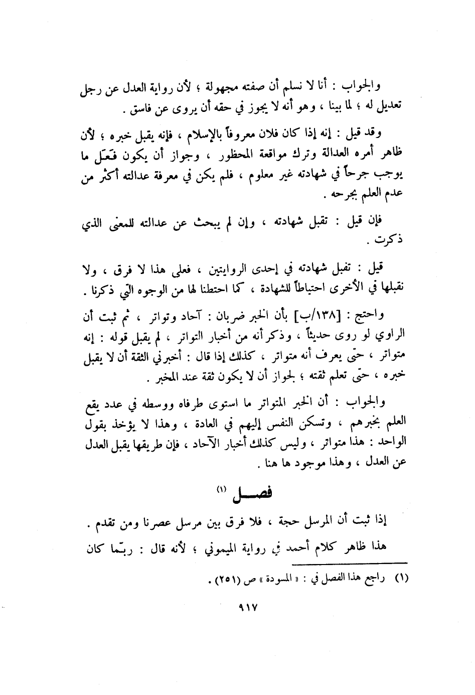 (١) راجع هذا الفصل في: "المسودة" ص (٢٥١) .