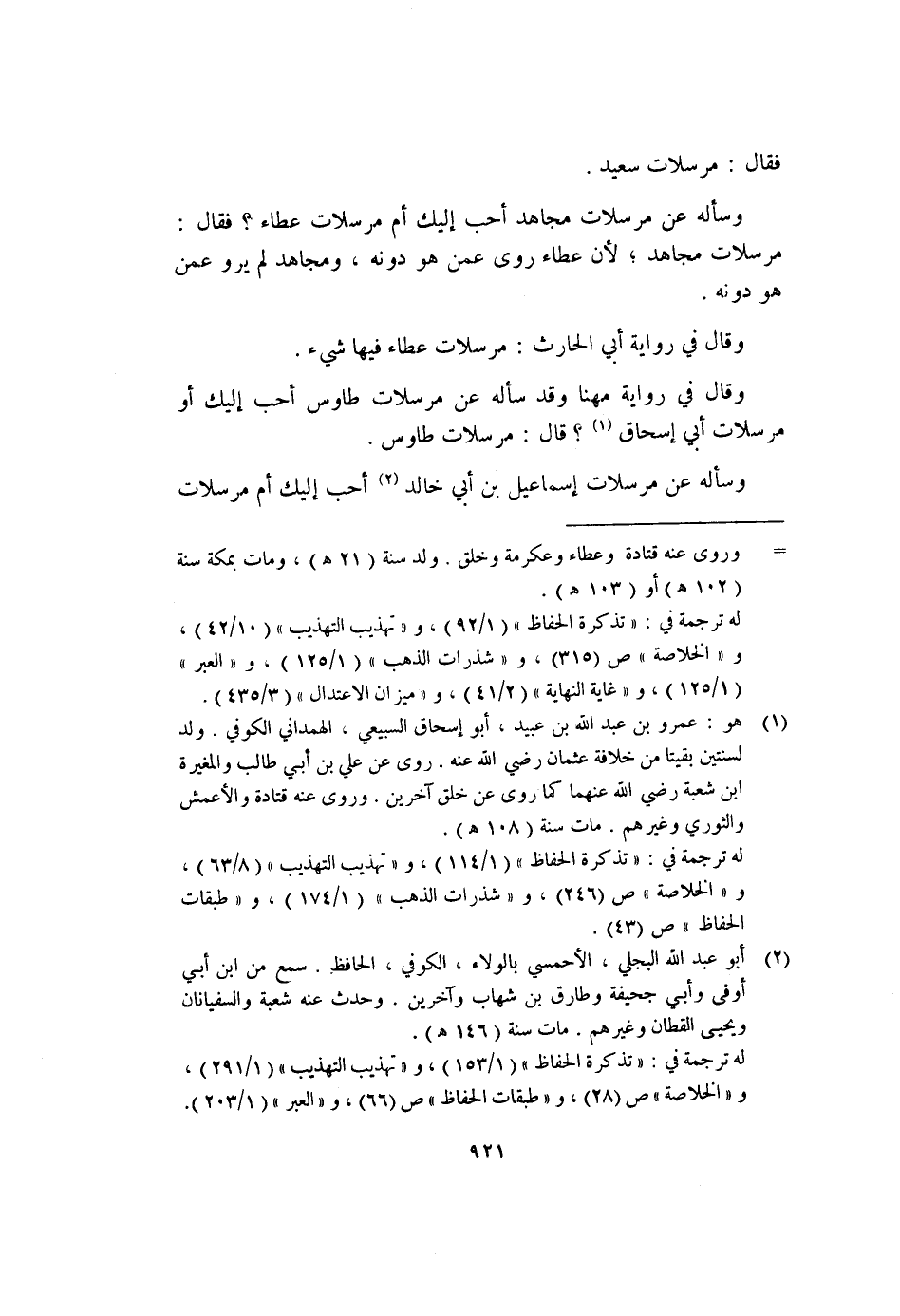 وسأله عن مرسلات مجاهد أحب إليك أم مرسلات عطاء؟ فقال: مرسلات مجاهد، لأن عطاء روى عمن هو دونه، ومجاهد لم يرو عمن هو دونه.