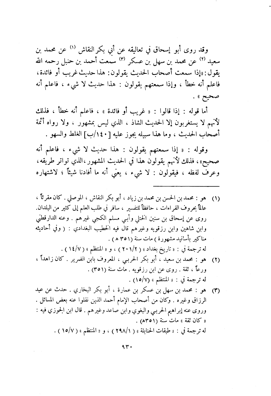 وقد روى أبو إسحاق في تعاليقه عن أبي بكر النقاش (١) عن محمد بن سعيد (٢) عن محمد بن سهل بن عسكر (٣) سمعت أحمد بن حنبل رحمه الله يقول: "إذا سمعت أصحاب الحديث يقولون: هذا حديث غريب أو فائدة، فاعلم أنه خطأ، وإذا سمعتهم يقولون: هذا حديث لاشيء، فاعلم أنه صحيح".
