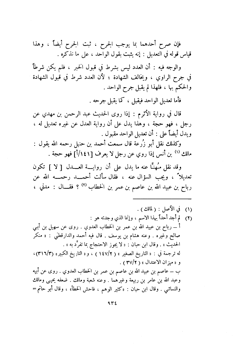وقد نقل مُهنَّا عنه ما يدل على أن رواية العدل [لا] تكون تعديلاً، ويجب السؤال عنه، فقال سألت أحمد رحمه الله عن رباح بن عبيد الله بن عاصم بن عمر بن الخطاب (٢) ؟ فقال: مدني،