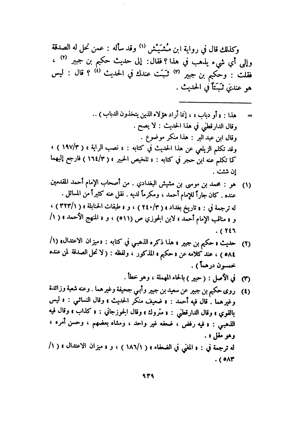 (٢) حديث "حكيم بن جبير" هذا ذكره الذهبي في كتابه: "ميزان الاعتدال" (١/٥٨٤) ، عند كلامه عن "حكيم" المذكور، ولفظه: (لا تحل الصدقة لمن عنده خمسون درهماً) .