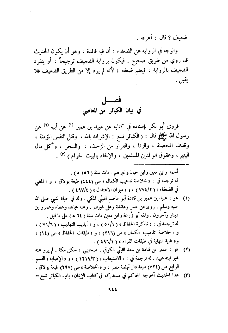 في بيان الكبائر من المعاصي