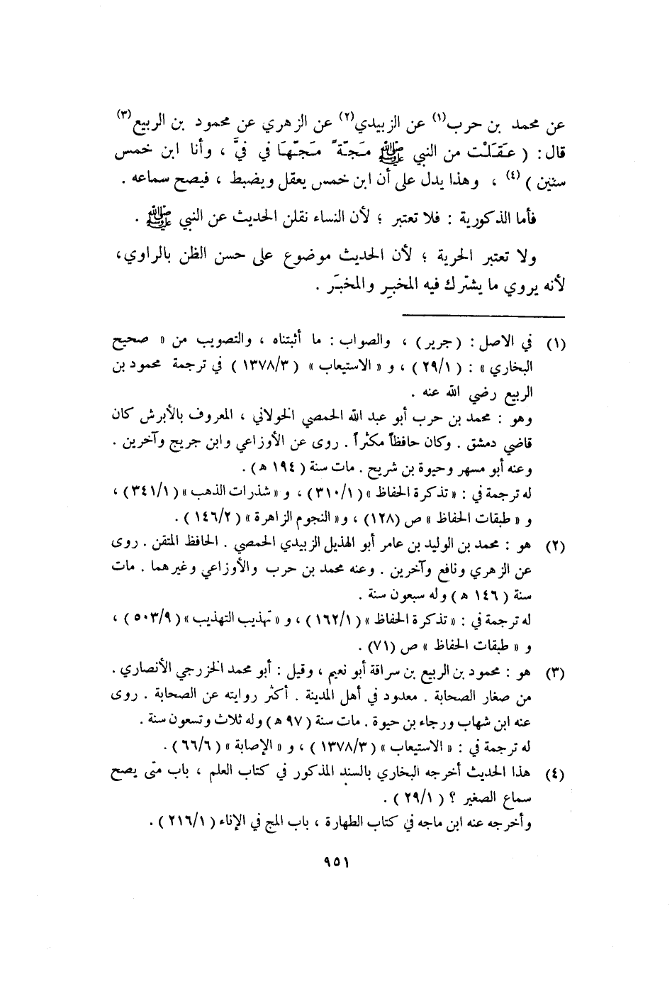 (١) في الاصل: (جرير) ، والصواب: ما أثبتناه، والتصويب من "صحيح البخاري": (١/٢٩) ، و"الاستيعاب" (٣/١٣٧٨) في ترجمة محمود بن الربيع رضي الله عنه.