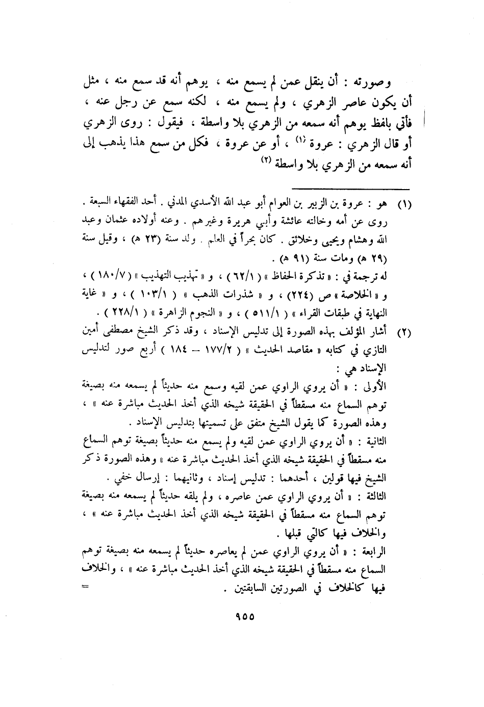 الرابعة: "أن يروي الراوي عمن لم يعاصره حديثاً لم يسمعه منه بصيغة توهم السماع منه مسقطاً في الحقيقة شيخه الذي أخذ الحديث مباشرة عنه"، والخلاف فيها كالخلاف في الصورتين السابقتين. =