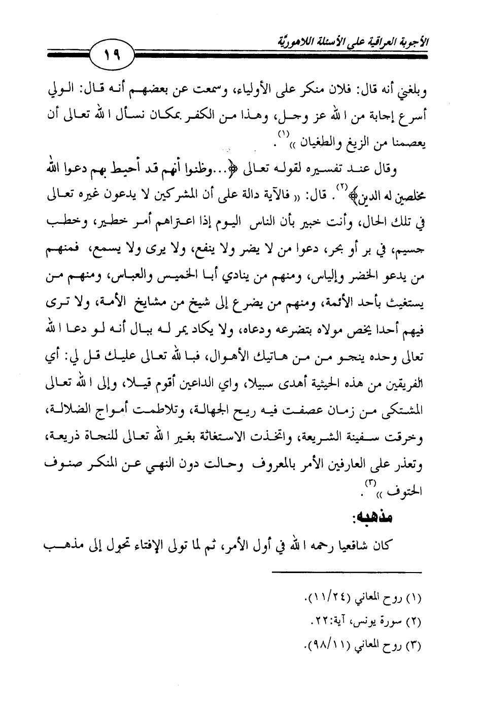 وفي ذلك من المدح ما لا يخفى، فإن مرتبة الصديقية بعد مرتبة النبوة كما أشبعنا الكلام عليه في التفسير، ولا أقل من كونها صفة مدح فوق العدل. فكيف يتأتى احتمال الكفر مع ذلك. وغاية ما أجابوا عما ذكر ونحوه أنه تقية، وهي كعكازه الأعمى عندهم. وقد أبطلنا القول بها في غير موضع من كتبنا كما أشرنا إليه سابقا. على أن الظاهر كون السائل شيعيا فلا معنى للتقية منه، واحتمال حضور سني مما لا يلتفت إليه.