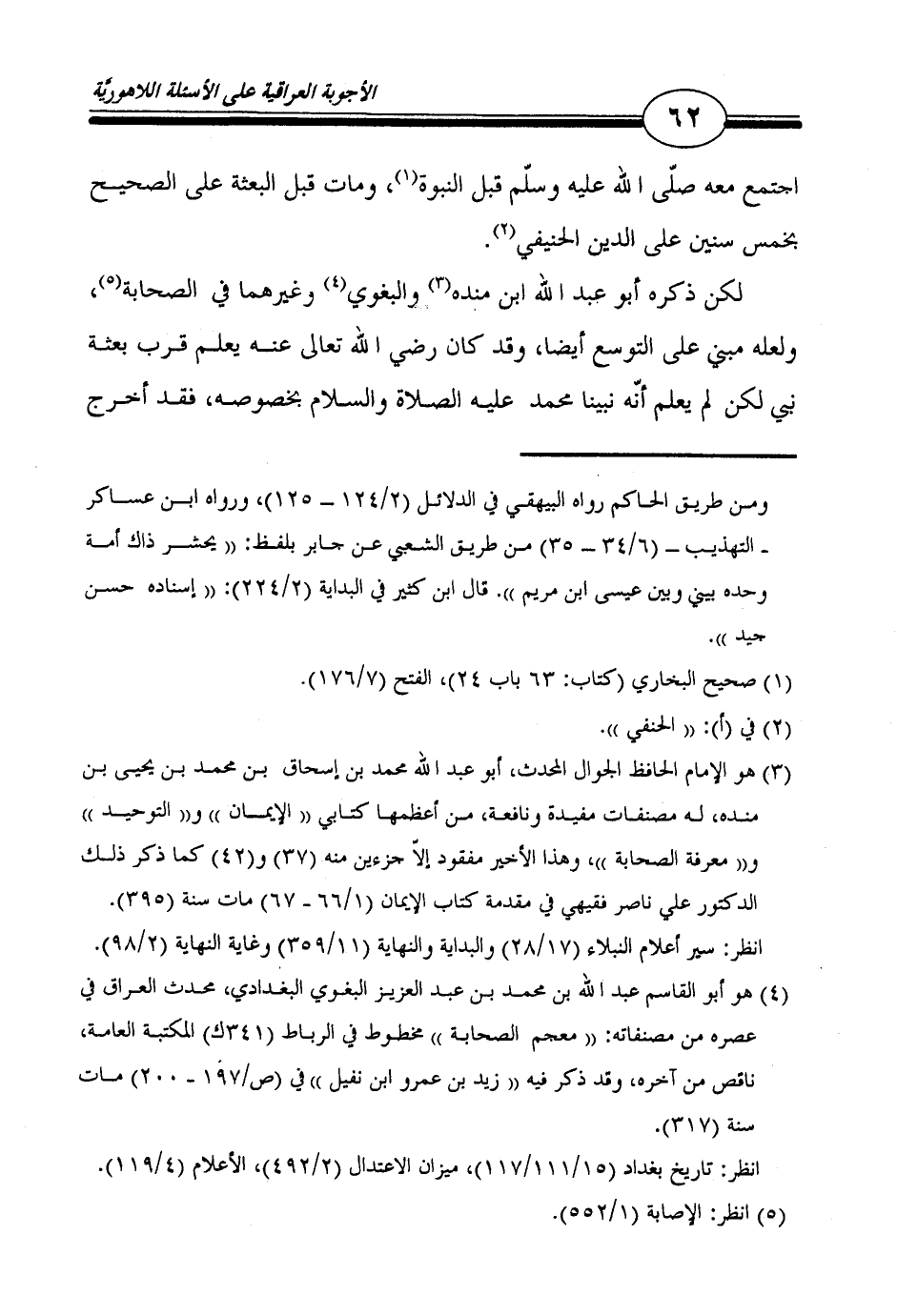 المراد منه ولا تخفى متانته. وفي فتوحات الشيخ الأكبر ـ قدس سره ـ ما يوافق ذلك فإنه قال: إن تقديم الخلفاء بعضهم على بعض لا يقتضى الجزم بالتفضيل بل ذلك راجع إلى الله تعالى ولم يعلم به فالله سبحانه يحفظنا من الفضول. وفي كلام الشيخ السهروردي في عقيدته ما يوافقه أيضا. ونقل عن الباقلاني أيضا أن مسألة التفضيل على الترتيب المشهور ظنية، وفي ذلك مخالفة لما عليه الإمام الأشعري حيث ذهب إلى أنها قطعية، قيل: وعليه فضل علي كرم الله وجهه على سائر الصحابة مبتدع قطعا وعلى القول الآخر فيه لا قطع بابتداعه، والمشهور عند الجماعة إطلاق القول بابتداعه وأن من فضّله كرم الله وجهه بالمحبة مبتدع أيضا ما لم يكن من ذريته، وهو خلاف الإنصاف كما لا يخفى على منصف. ومن الناس من لم ير تفضيله على الكل ابتداعا لما ثبت من جلة من أئمة الحديث أنه ما ورد في صحابي ما ورد في علي كرم الله وجهه من الأخبار النبوية والمدائح المصطفوية مع ما تواتر عنه من الشجاعة والعلم والإيثار وملازمة النبي - صلى الله عليه وسلم - صغيرا وكبيرا وغير ذلك، وكون غيره أشجع منه وأعلم وأكثر ملازمة له - صلى الله عليه وسلم - في حيز المنع وجعل الابتداع عدم توفية الباقين حقهم من التفضيل، بل قد يجر ذلك إلى الكفر والعياذ بالله تعالى وأطال الكلام في ذلك وفيه نظر. ونقل عن آخرين أنه كرم الله وجهه