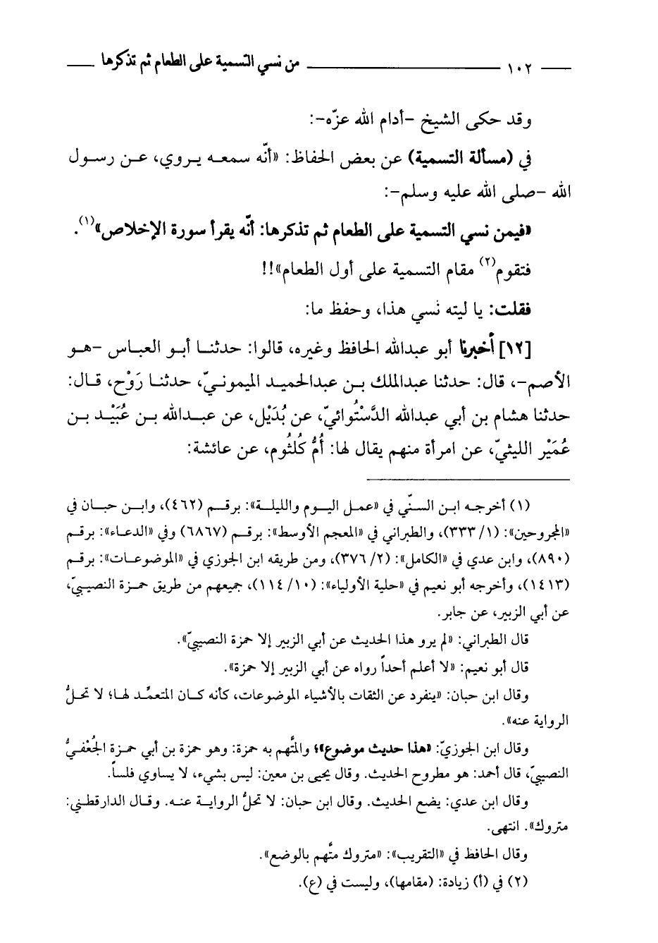 وقد حكى الشيخ أدام الله عزه في مسألة التسمية عن بعض الحفاظ: أنه سمعه يروي عن رسول الله صلى الله عليه وسلم: