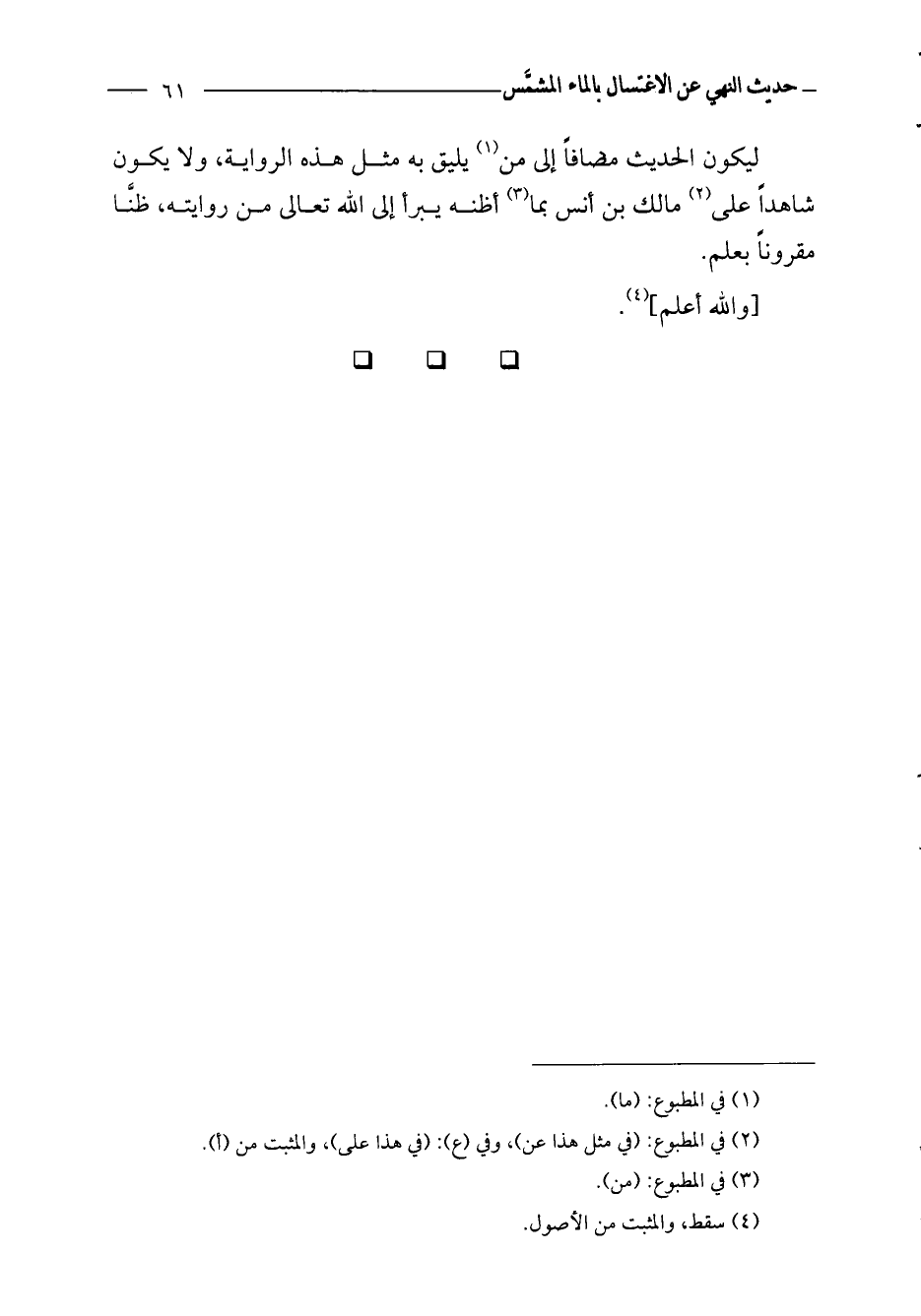 ليكون الحديث مضافاً إلى من يليق به مثل هذه الرواية، ولا يكون شاهداً على مالك بن أنس بما أظنه يبرأ إلى الله تعالى من روايته، ظناً مقروناً بعلم.