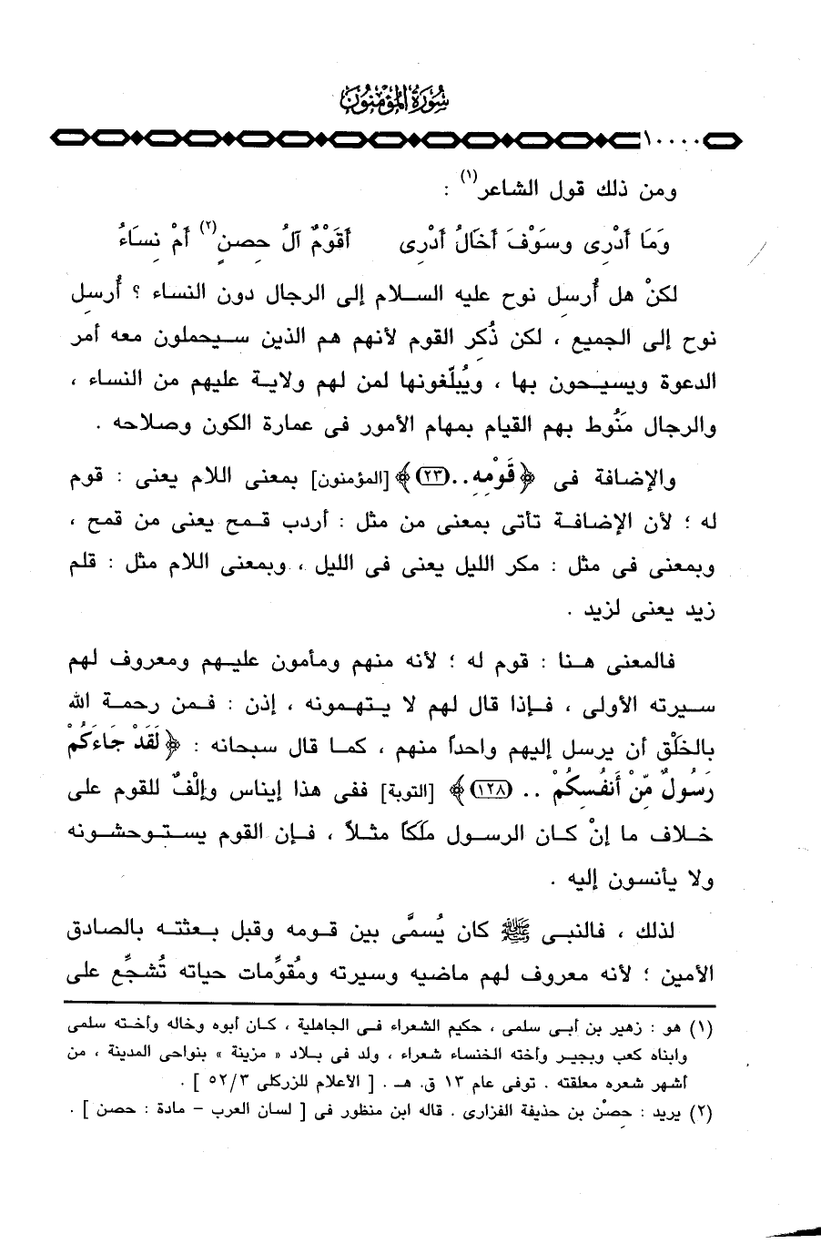 وَمَا أََدْرِي وسَوْفَ أَخَالُ أَدْرِي ... أَقَوْمٌ آلُ حِصنٍ أَمْ نِسَاءُ