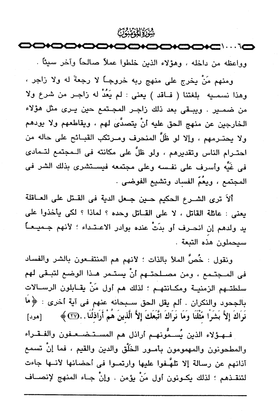 ألاَ ترى الشرع الحكيم حين جعل الدية في القتل على العاقلة يعني: عائلة القاتل، لا على القاتل وحده؟ لماذا؟ لكي يأخذوا على يد ولدهم إن انحرف أو بدَتْ عنده بوادر الاعتداء؛ لأنهم جميعاً سيحملون هذه التبعة.