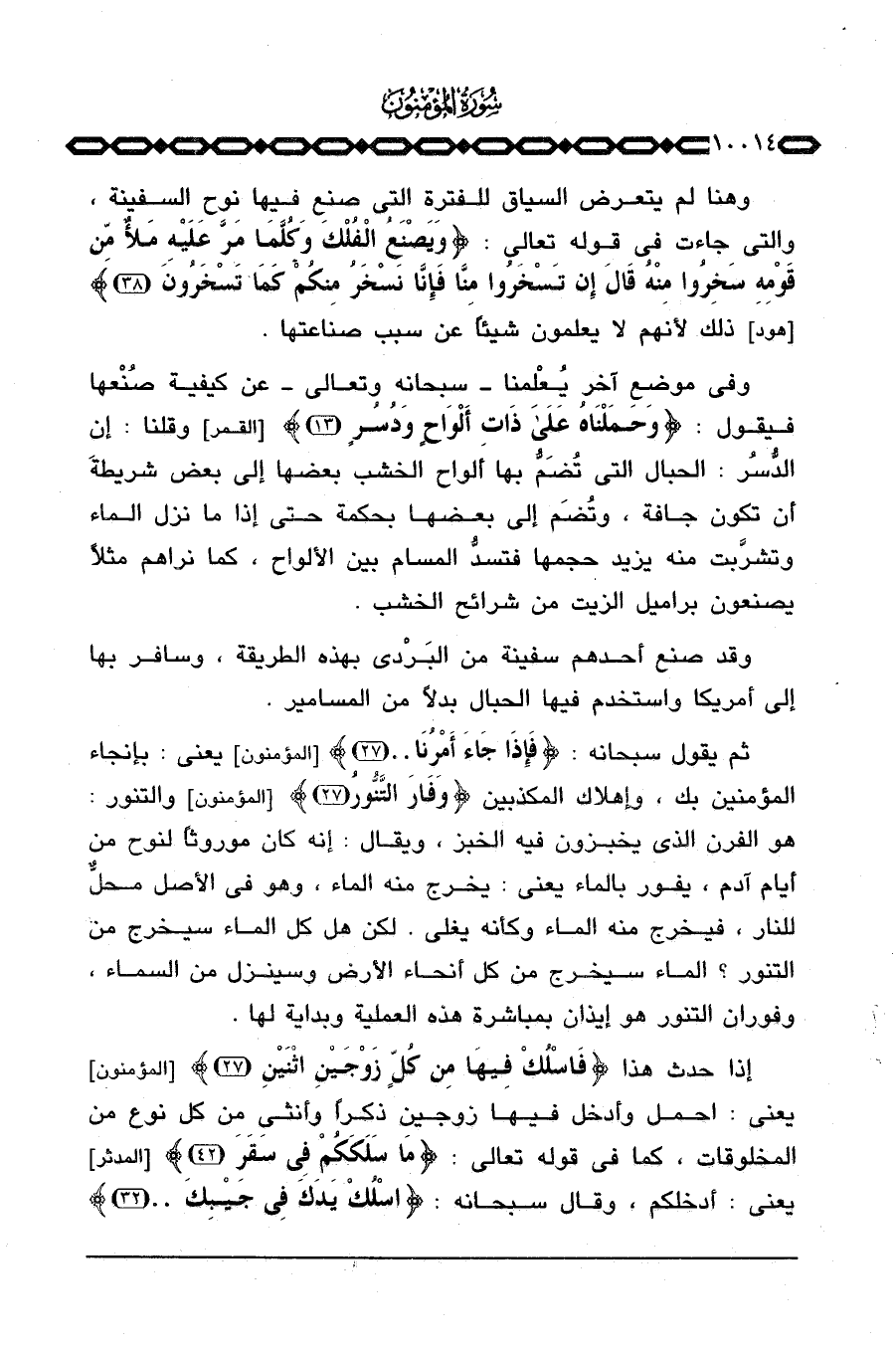 ثم يقول سبحانه: {فَأَوْحَيْنَآ إِلَيْهِ أَنِ اصنع الفلك بِأَعْيُنِنَا وَوَحْيِنَا فَإِذَا جَآءَ أَمْرُنَا. .} [المؤمنون: 27] يعني: بإنجاء المؤمنين بك، وإهلاك المكذبين {وَفَارَ التنور. .} [المؤمنون: 27] والتنور: هو الفرن الذي يخبزون فيه الخبز، ويقال: إنه كان موروثاً لنوح من أيام آدم، يفور بالماء يعني: يخرج منه الماء، وهو في الأصل محلٌّ للنار، فيخرج منه الماء وكأنه يغلي. لكن هل كل الماء سيخرج من التنور؟ الماء سيخرج من كل أنحاء الأرض وسينزل من السماء، وفوران التنور هو إيذان بمباشرة هذه العملية وبداية لها.