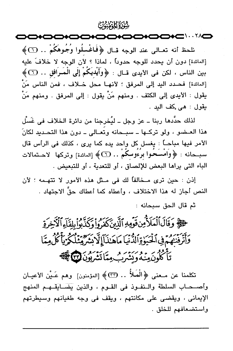 لذلك حدَّدها ربنا - عَزَّ وَجَلَّ - ليُخرِجنا من دائرة الخلاف في غَسْل هذا العضو، ولو تركها - سبحانه وتعالى - دون هذا التحديد لكانَ الأمر فيها مباحاً: يغسل كل واحد يده كما يرى، كذلك في الرأس قال سبحانه: {وامسحوا بِرُؤُوسِكُمْ. .} [المائدة: 6] وتركها لاحتمالات الباء التي يراها البعض للإلصاق، أو للتعدية، أو للتبعيض.