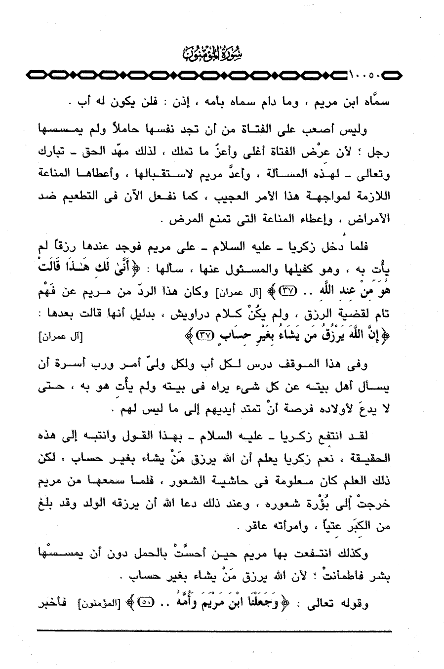 وكذلك انتفعت بها مريم حين أحسَّتْ بالحمل دون أن يمسسْها بشر فاطمأنتْ؛ لأن الله يرزق مَنْ يشاء بغير حساب.