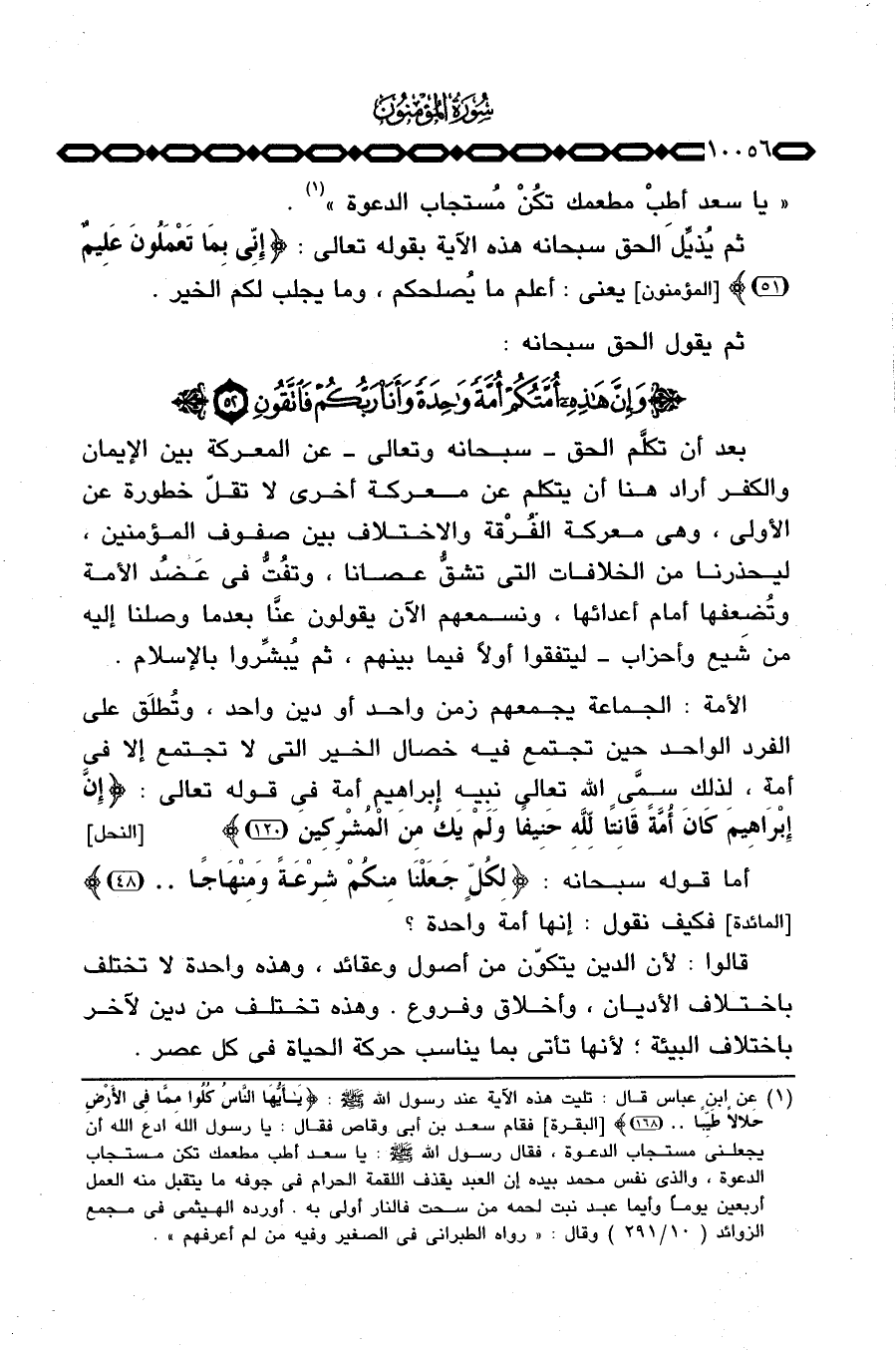 ثم يقول الحق سبحانه: {وَإِنَّ هذه أُمَّتُكُمْ أُمَّةً وَاحِدَةً. .} .