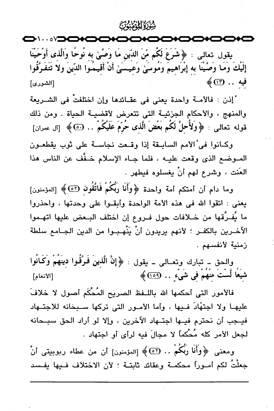 إذن: فالأمة واحدة يعني في عقائدها وإن اختلفتْ في الشريعة والمنهج، والأحكام الجزئية التي تتعرض لأقضية الحياة. ومن ذلك قوله تعالى: {وَلأُحِلَّ لَكُم بَعْضَ الذي حُرِّمَ عَلَيْكُمْ. .} [آل عمران: 50] .