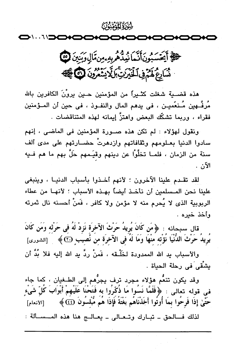 {أَيَحْسَبُونَ أَنَّمَا نُمِدُّهُمْ بِهِ مِن مَّالٍ وَبَنِينَ نُسَارِعُ لَهُمْ. .} .