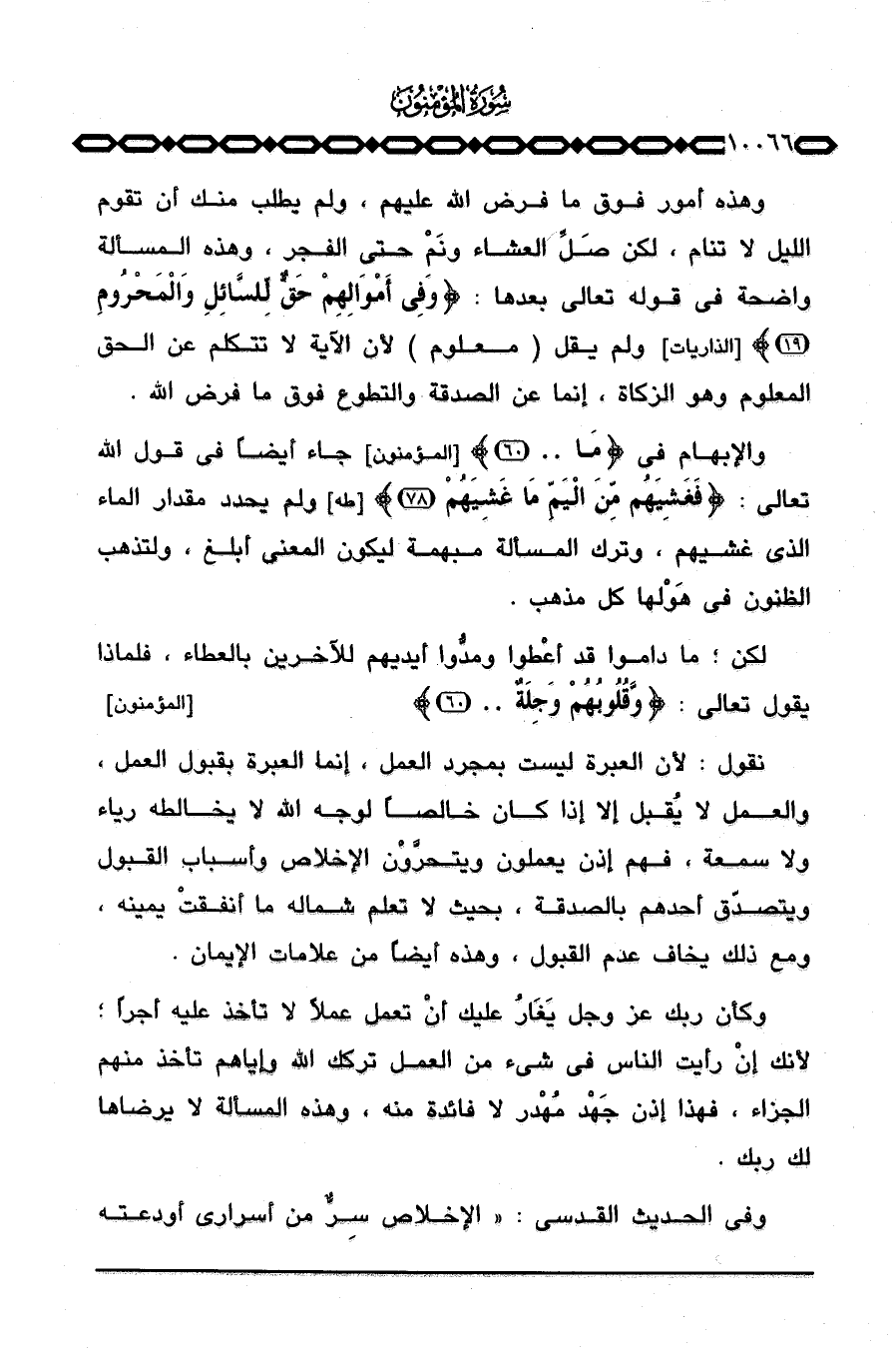 وهذه أمور فوق ما فرض الله عليهم، ولم يطلب منك أن تقوم الليل لا تنام، لكن صَلِّ العشاء ونَمْ حتى الفجر، وهذه المسألة واضحة في قوله تعالى بعدها: {وفي أَمْوَالِهِمْ حَقٌّ لَّلسَّآئِلِ والمحروم} [الذرايات: 19] ولم يقل (معلوم) لأن الآية لا تتكلم عن الحق المعلوم وهو الزكاة، إنما عن الصدقة والتطوع فوق ما فرض الله.