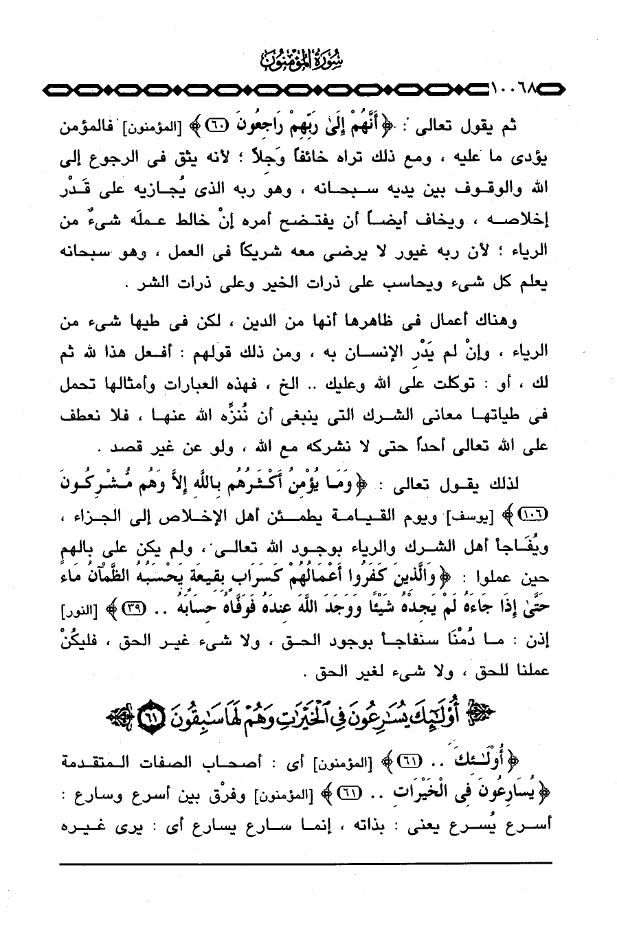 {أولئك. .} [المؤمنون: 61] أي: أصحاب الصفات المتقدمة {يُسَارِعُونَ فِي الخيرات. .} [المؤمنون: 61] وفرْق بين أسرع وسارع: أسرع يُسرع يعني: بذاته، إنما سارع يسارع أي: يرى غيره