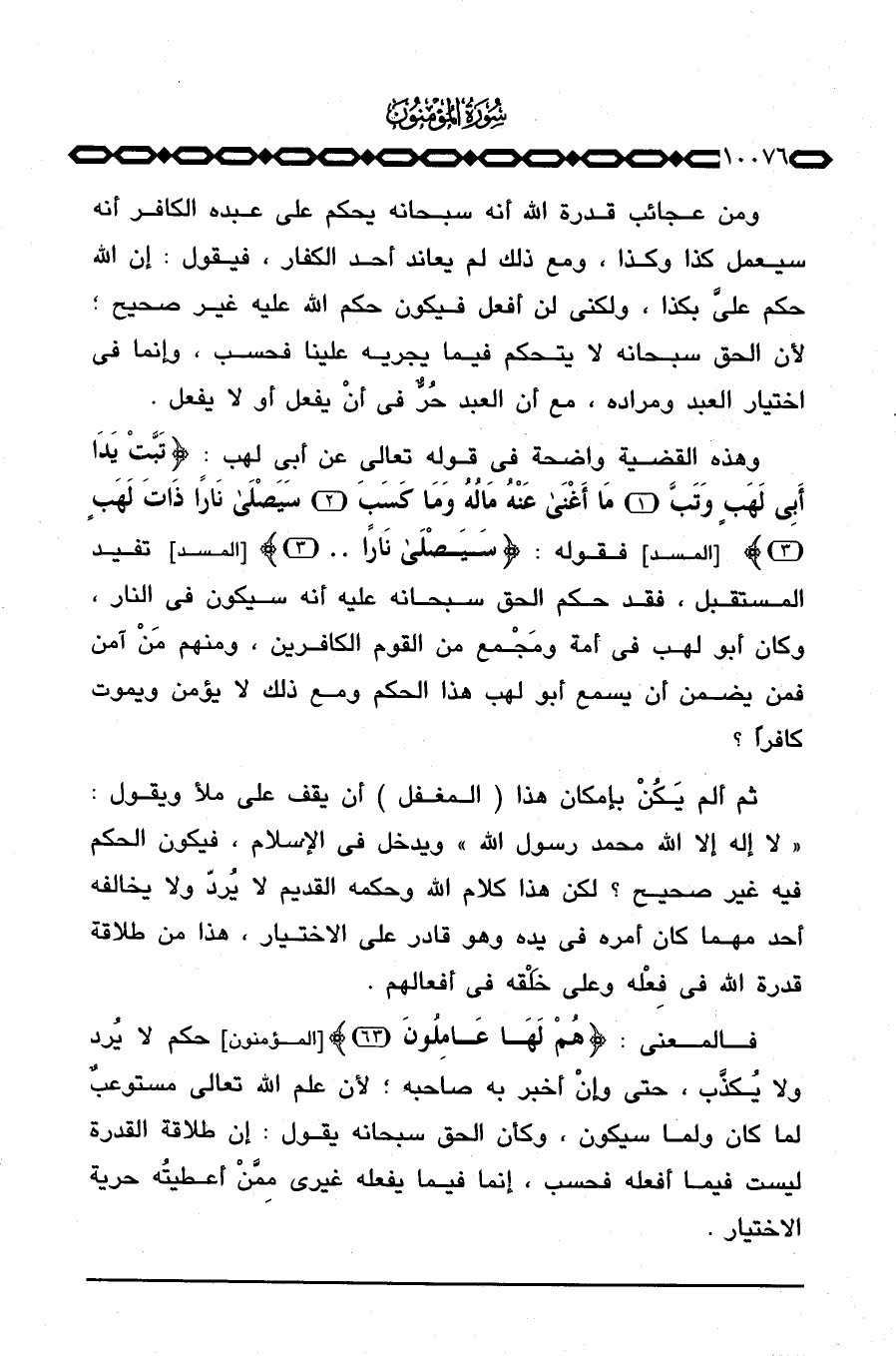 ثم ألم يَكُنْ بإمكان هذا (المغفل) أن يقف على ملأ ويقول: «لا إله إلا الله محمد رسول الله» ويدخل في الإسلام، فيكون الحكم فيه غير صحيح؟ لكن هذا كلام الله وحكمه القديم لا يُردّ ولا يخالفه أحد مهما كان أمره في يده وهو قادر على الاختيار، هذا من طلاقة قدرة الله في فِعْله وعلى خَلْقه في أفعالهم.